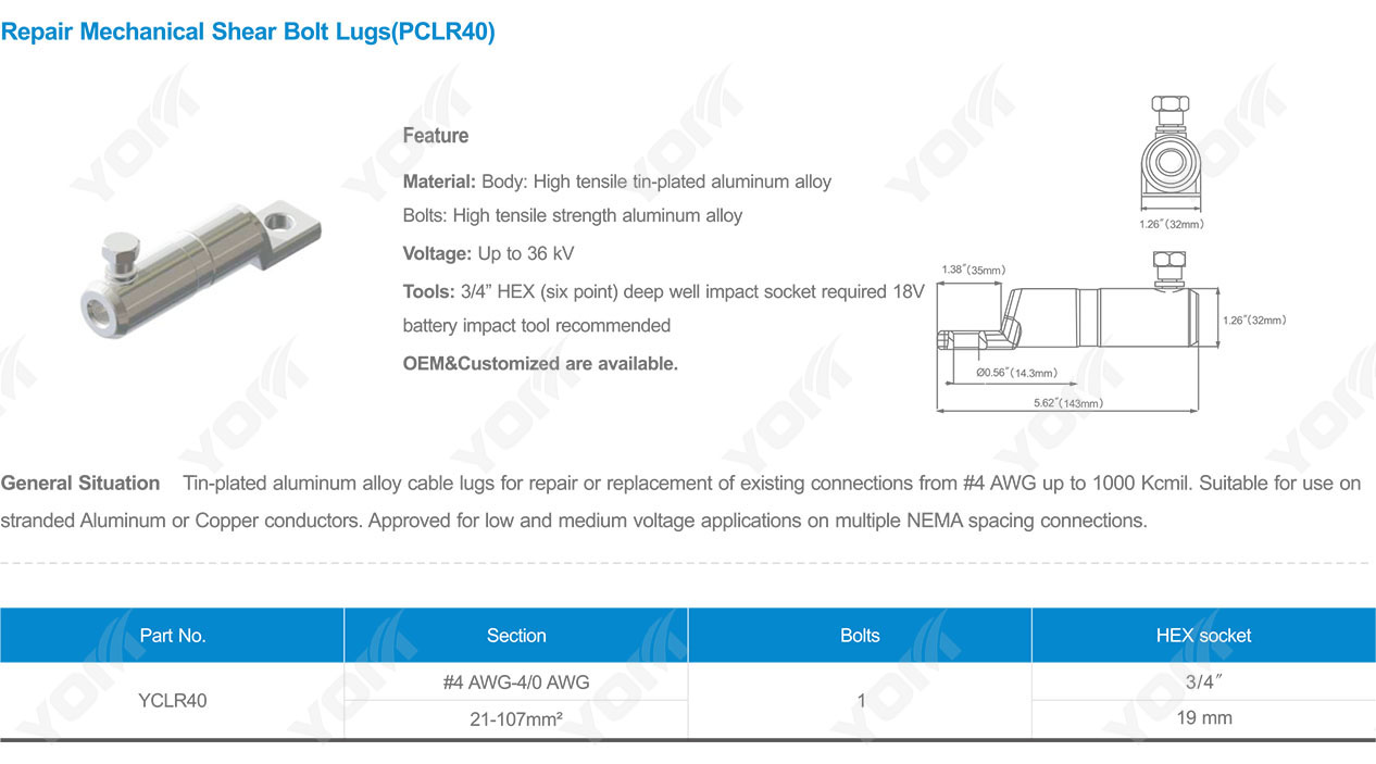 Repair Mechanical Shear Bolt Lugs(PCLR40)