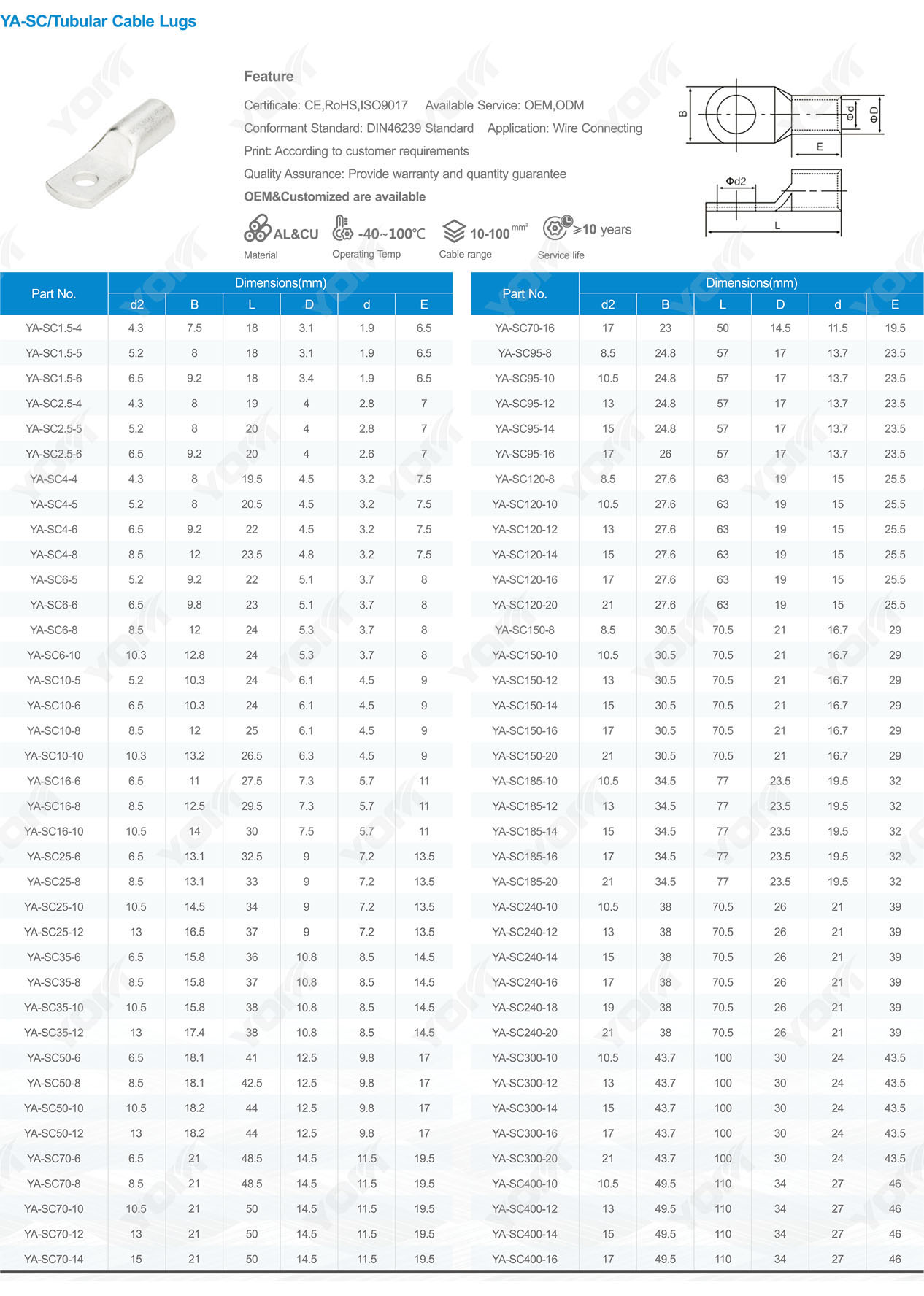 YA-SC/Tuber Cable Lugs