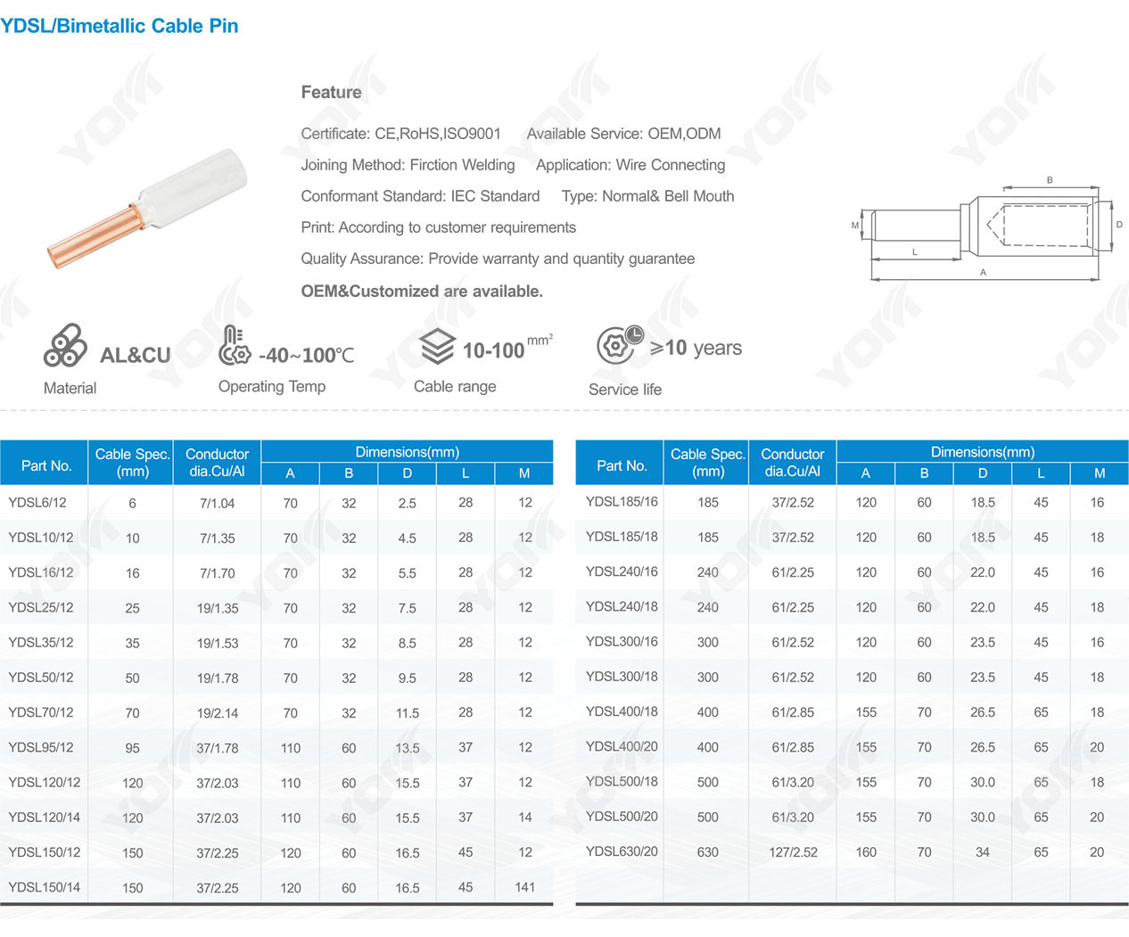 YDSL/Bimetallic Cable Pin