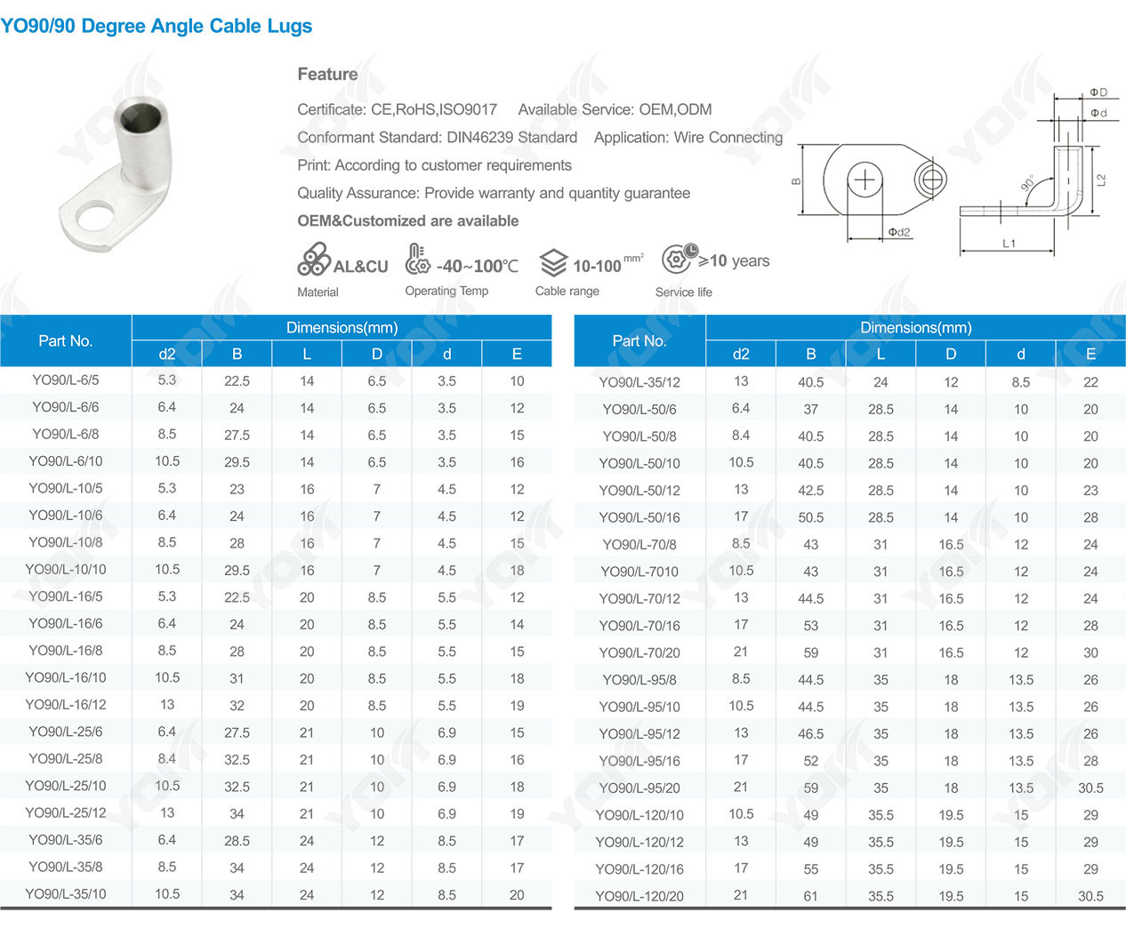 YO90/90 Degree Angle Cable Lugs